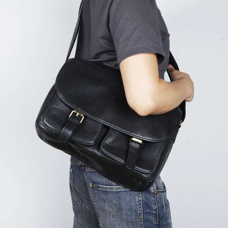 Blue leather goods men's shoulder bag leather messenger bag trendy fashion leather messenger bag British bag small shoulder bag men's bag