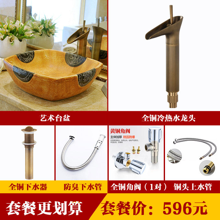 Southeast Asia Ceramics Washbasin Square Washbasin Chinese Classical Art Terrace Basin Retro American Terrace Basin Home