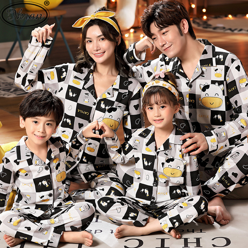 Spring Autumn Season Pro-Sub-Dress Pyjamas Pure Cotton Long Sleeve Cartoon Mother Woman Family Of Three Children CUHK Children's Home Suit Suit