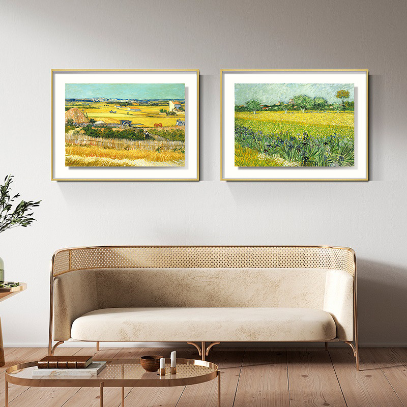 Van Gogh Harvest Double Living Room Decorative Painting World Famous Painting Entrance Oil Painting Sofa Background Wall Painting European Art