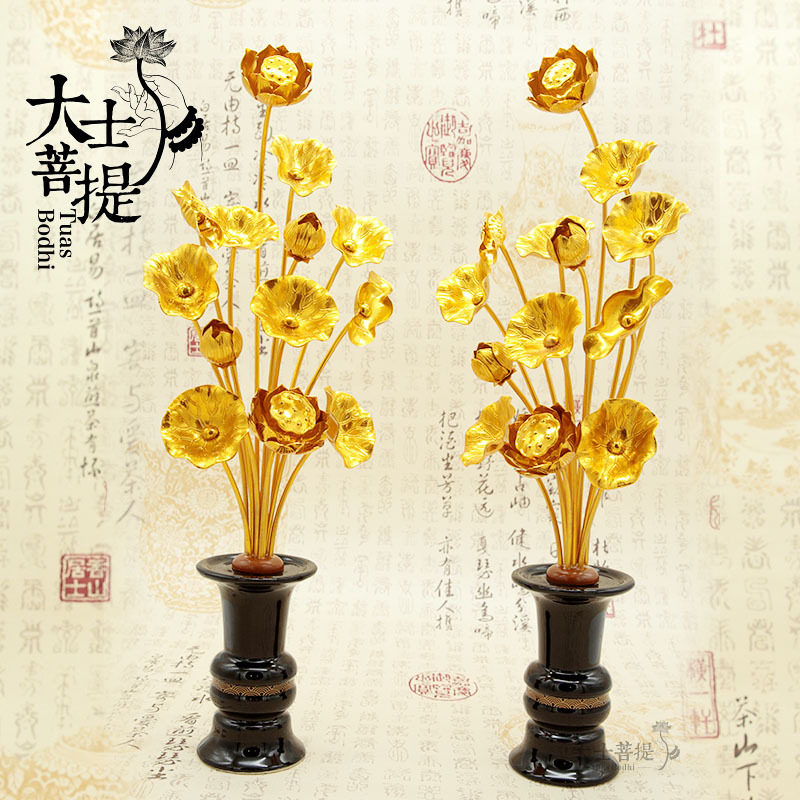 Handmade knead for Buddhist vases Lotus Buddhist Hall emulation bouquet fake flowers Golden Lotus Flowers color painted home for the Buddha pendulum pieces