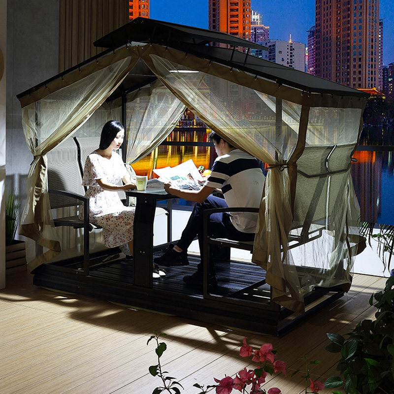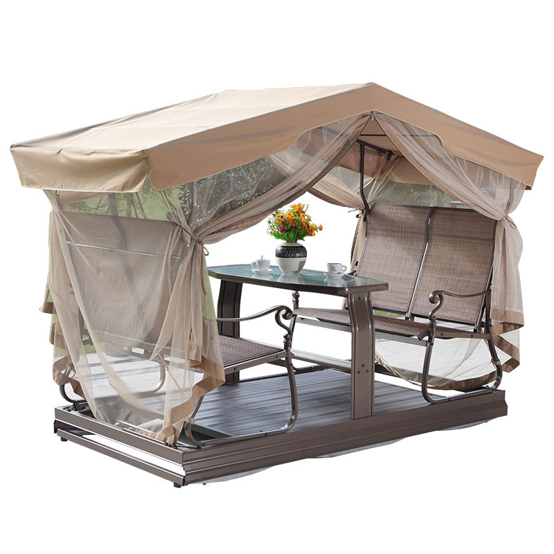 Full aluminium PCPC top (without curtain) Four people rocking chair with yarn blinds (caramel-unseating cushion) D8001 four-man rocking chair with yarn curtain (ink green-fit cushion) - pre-sale of four people