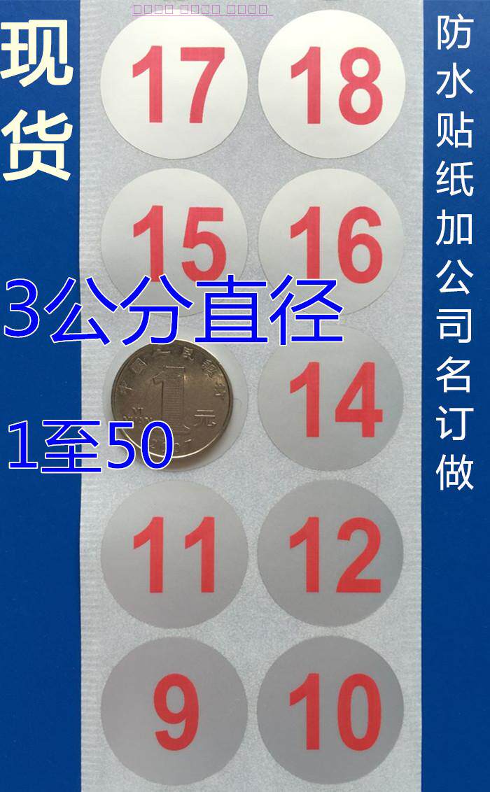 3CM1-50 silver bottom red word waterproof digital number stickers wine glasses kindergarten bowls digital number marking stickers