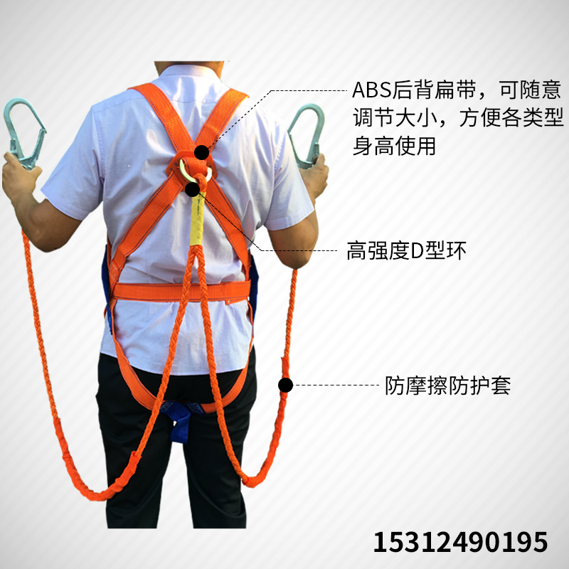 5 meters aerial work safety belt safety rope European five-point full body double hook Outdoor construction safety rope rope