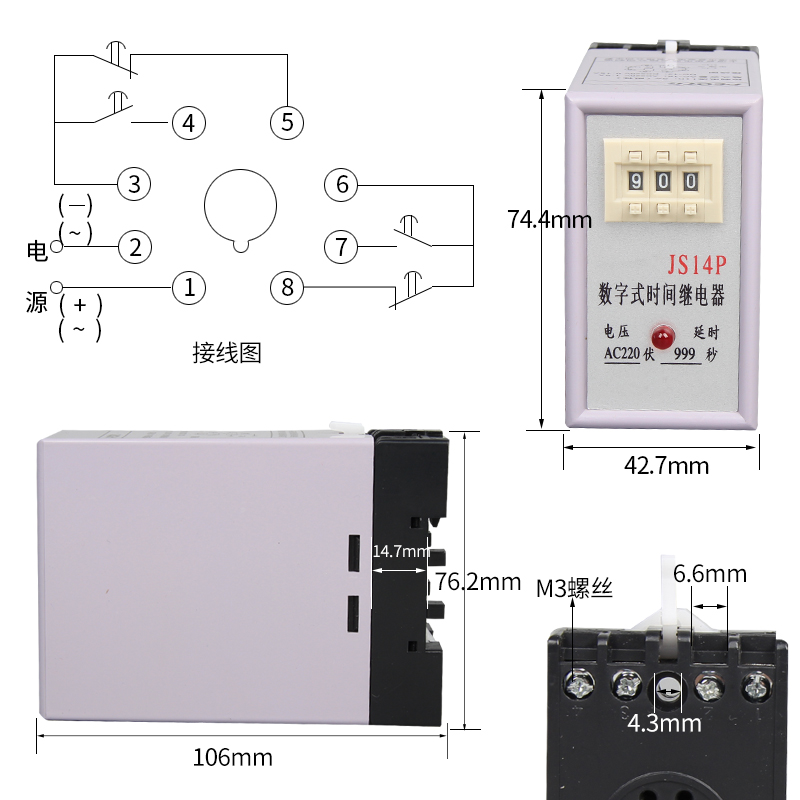 Time - relay AC 220V binary adjustment adjustable digital power - on delay time 380