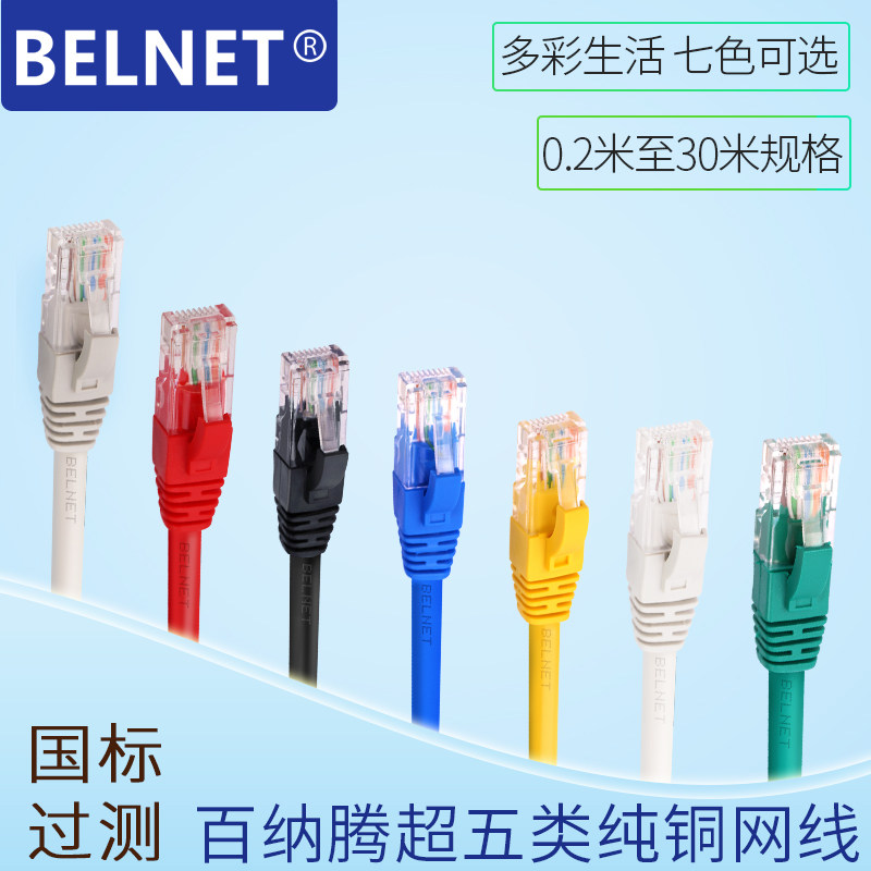 BELNET super five types of network cable CAT5E eight-core twisted pair short jumper 0 2m0 3 meters 50CM room wiring multicolor