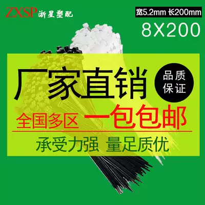 Gold Star 8*200mm fixed plastic environmental protection self-locking nylon cable tie 250 wiring harness cable tie White black