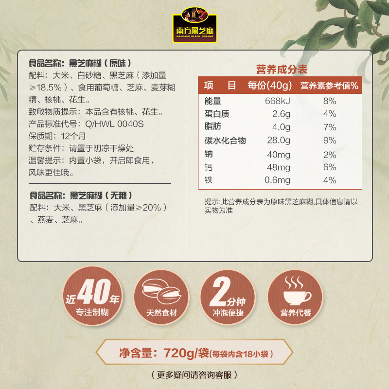 Southern black sesame mix original flavor 720g ready-to-eat brewed beverage cereal nutrition breakfast satiety meal replacement powder sugar-free sesame mix