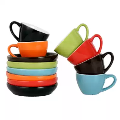 Koonan European color glaze coffee cup set ceramic thick coffee cup saucer fancy coffee cappuccino cup