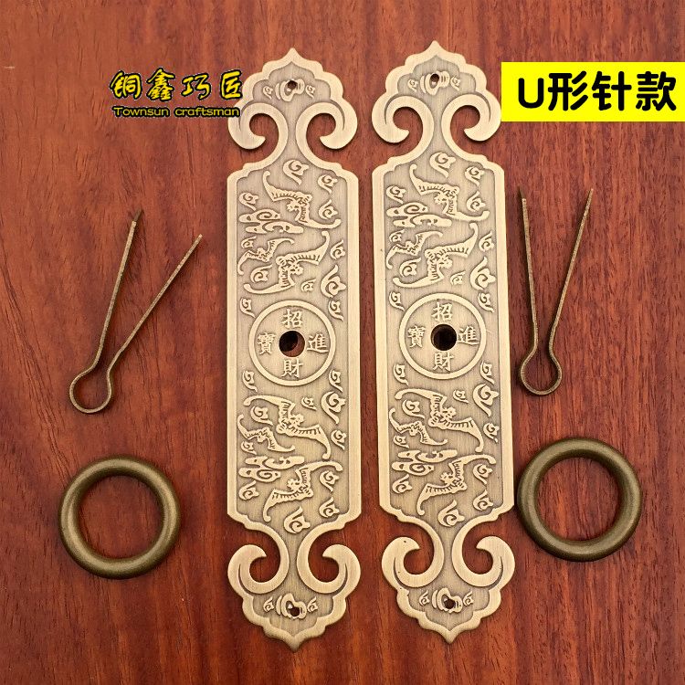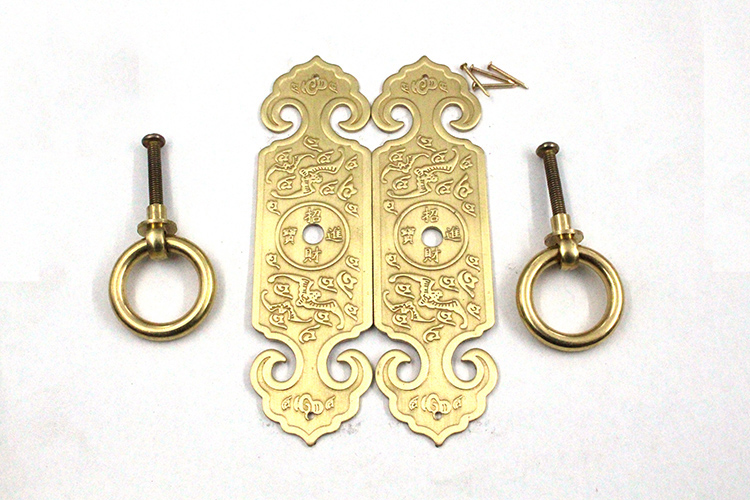 Chinese antique Ming and Qing furniture copper accessories copper Ming bookcase straight whole cabinet wardrobe copper handle cabinet door handle