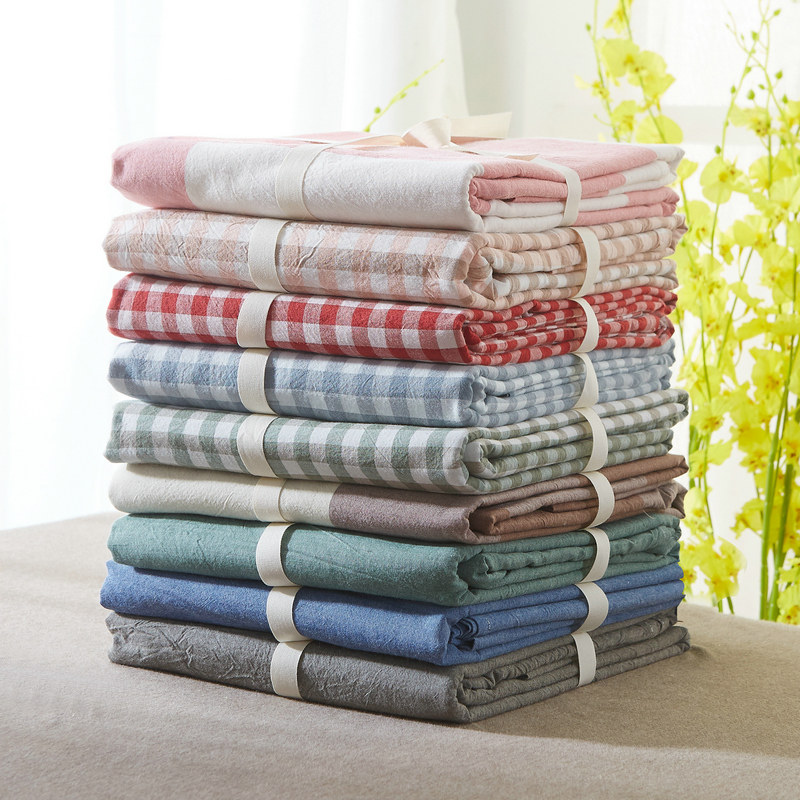 Water washing cotton sheets single cotton student dormitory male single bed plaid cotton 100 single bed hat three sets
