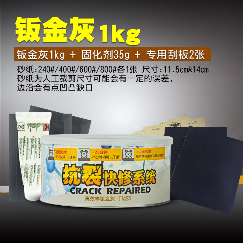 Fiber grey 0 5KG sandpaper 4 sheets of squeegee 2 pieces of fibre ash 1KG sandpaper 4 sheets of squeegee 2 sheets sheet metal grey fiber grey special curing agent sheet metal grey 0 5KG sandpaper 4 sheets