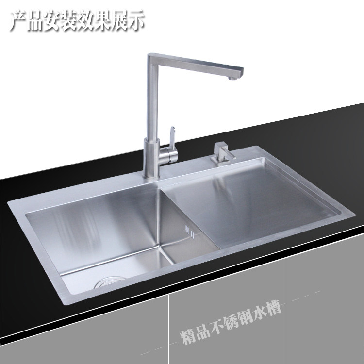 Thicken high - end hand - made SUS304 stainless steel single - tank asphalt plate household water basin large basin kitchen wash