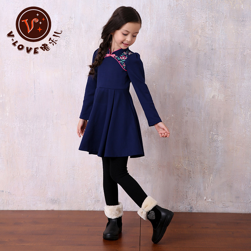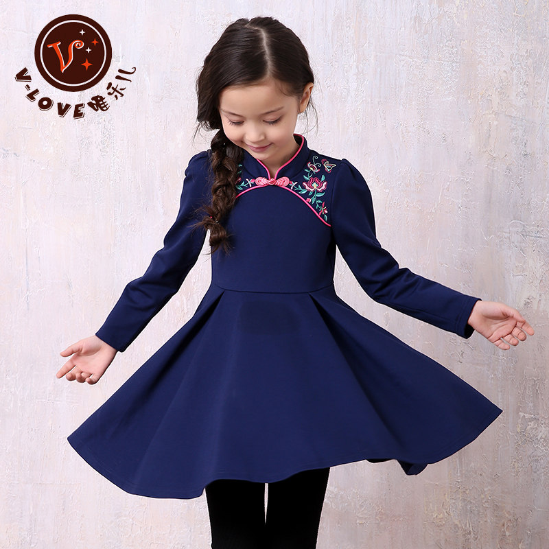 Girl Embroidered Ocean Dress New National Wind Child Clothes 9-12-year-old Children 10 Embroidery 8 Out of the dress