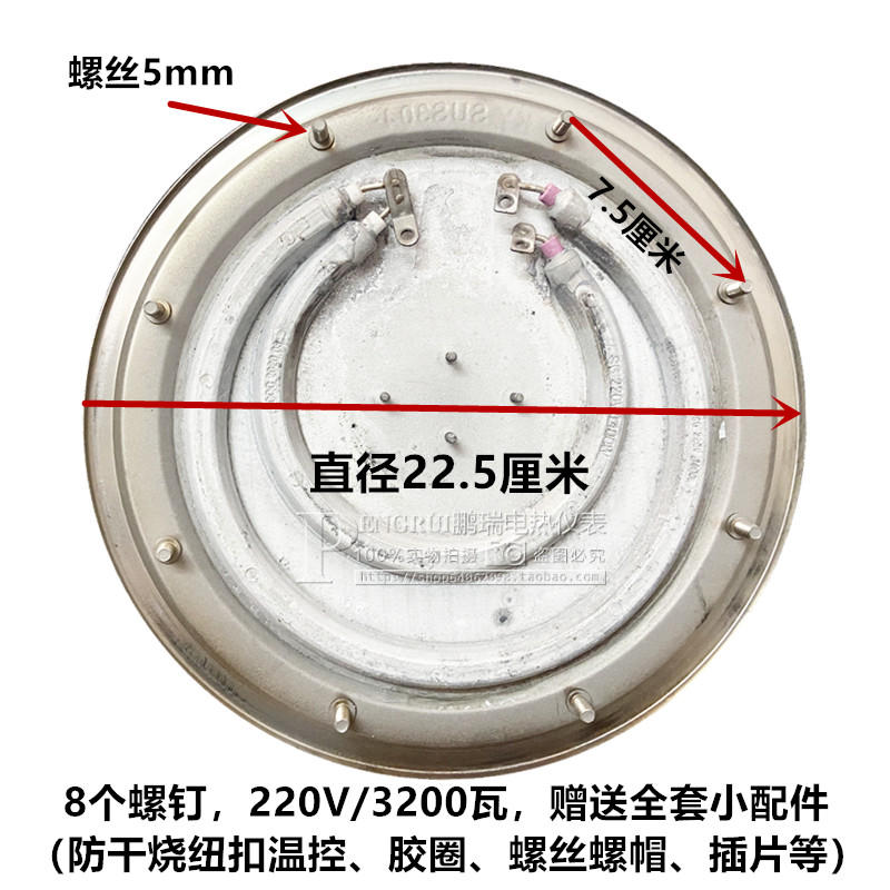 Stainless steel electric boiling water drum heating plate electric heating bucket bottom electric heating plate electric heating pipe 1800W 2800W 3200W