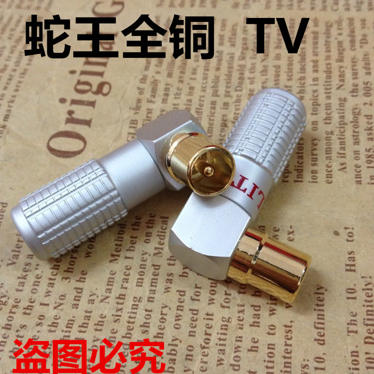 Special offer snake king all copper gold-plated TV head TV antenna plug 9 5 video camera TV elbow radio frequency head F head