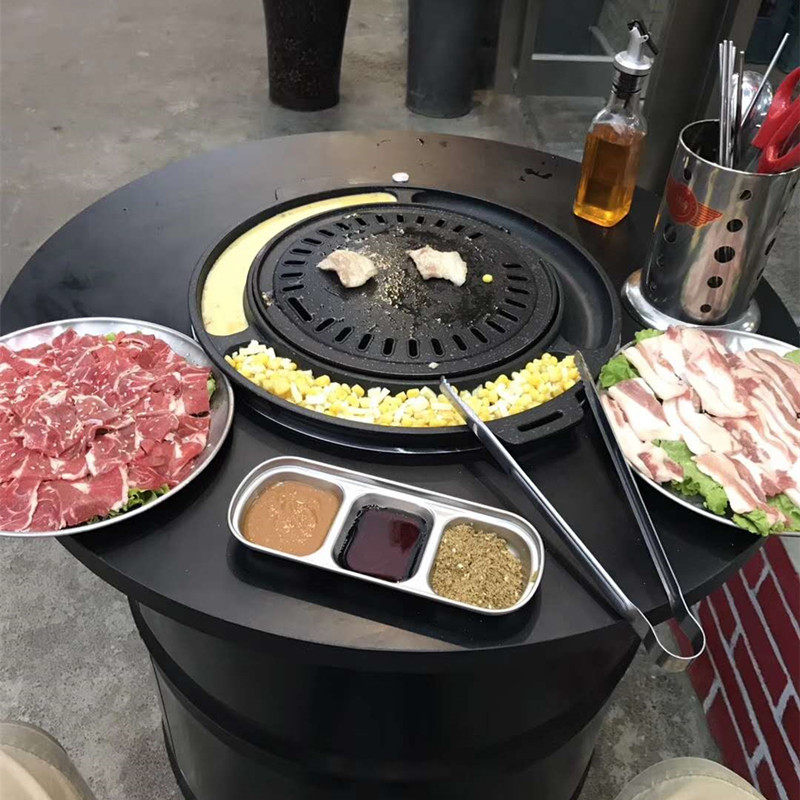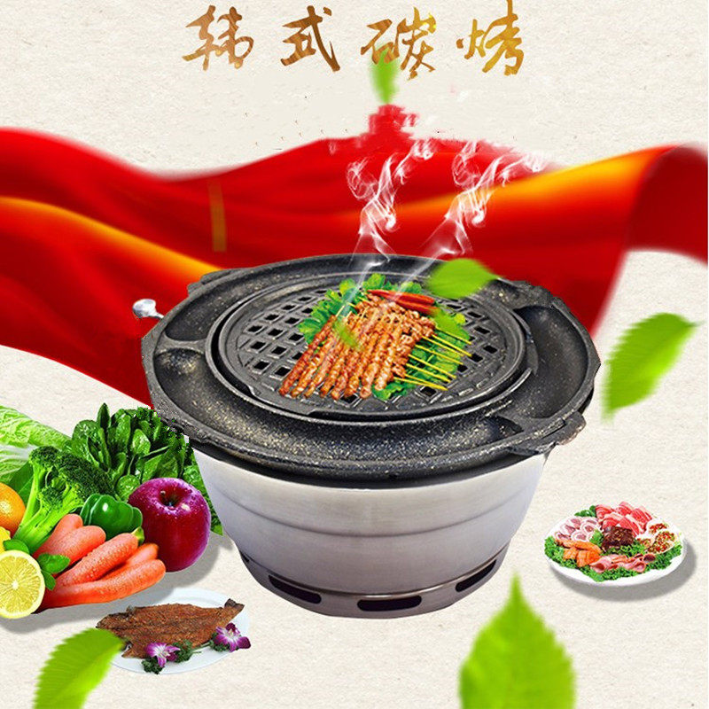 Korean carbon roaster commercial round embedded barbecue stove stainless steel charcoal oven large Korea charcoal barbecue