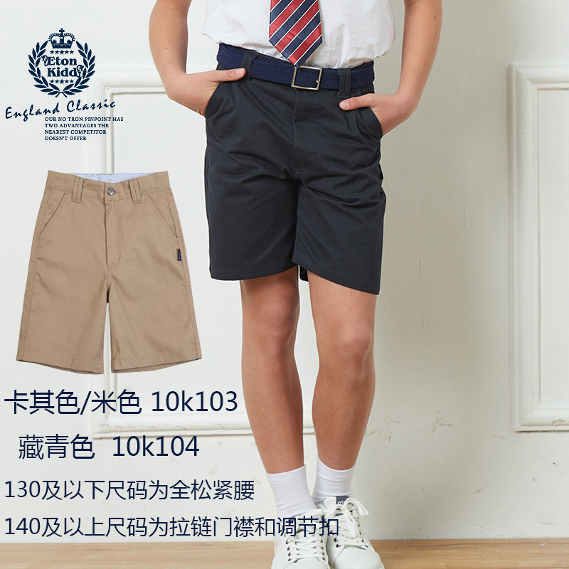 EK Eaton Gide primary and secondary school uniform boys khaki navy blue yarn card five-point shorts 10K104