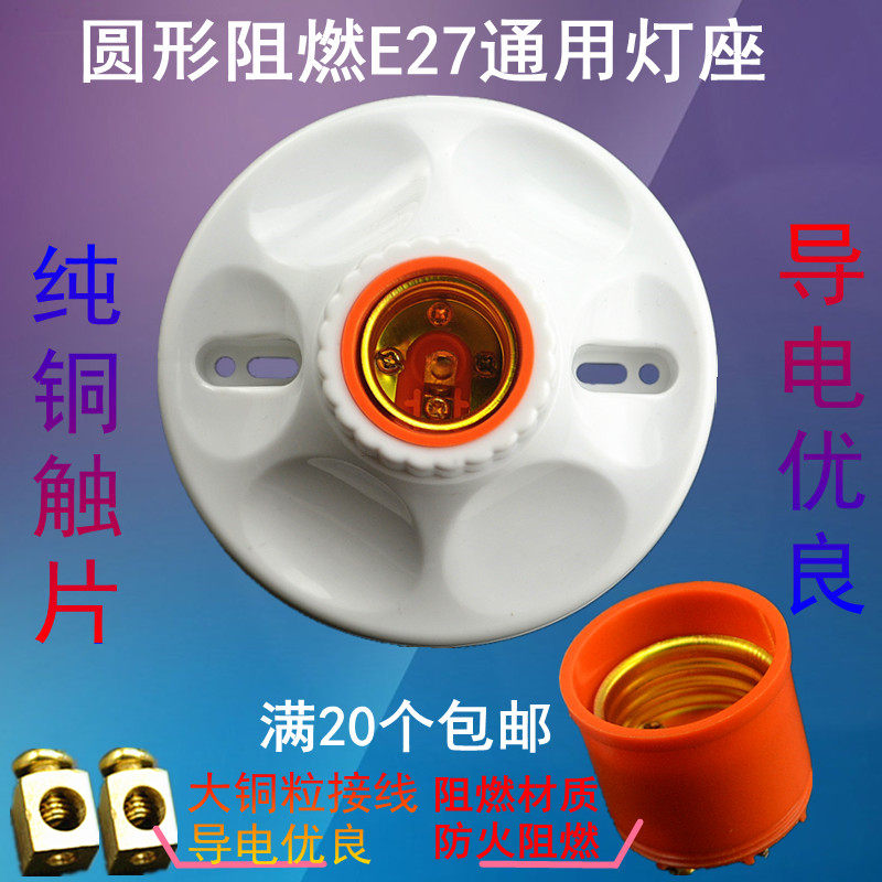 Round Ming dress concealed lamp holder flat lamp holder suction top lampshade E27 spiral screw mouth lamp holder flame retardant inner core LED