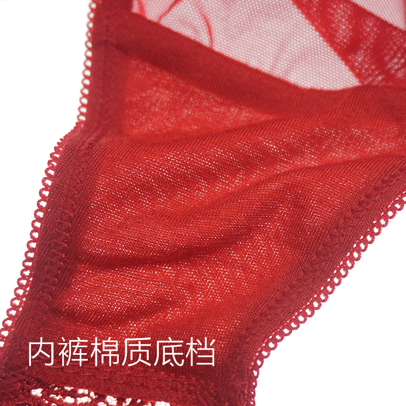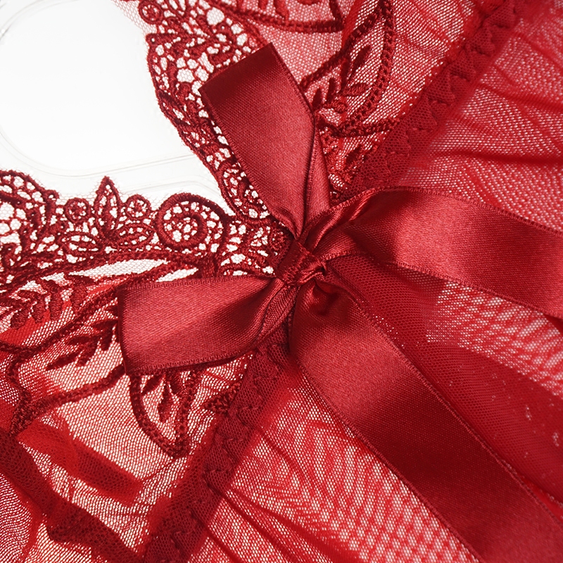 Sexy pajamas women's thin nightdress red embroidered lace stitching cardigan temptation suspenders nightdress lace panties