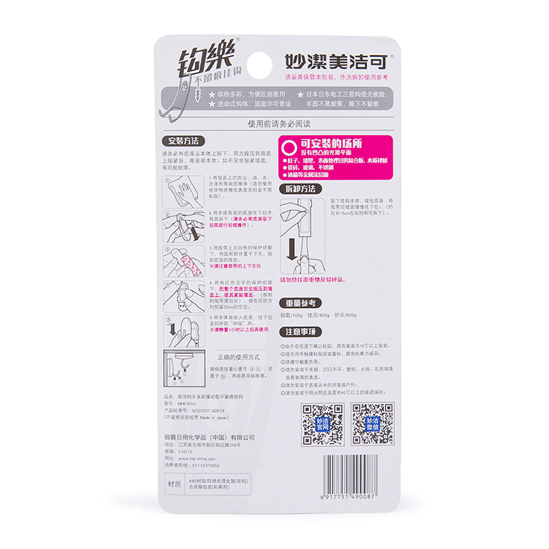 Miaojie Meijie Hook Le Colorful Swing Type Not Easy to Leave Traces Hook Home Series 3 Pack 4 Boxes Combination Wall