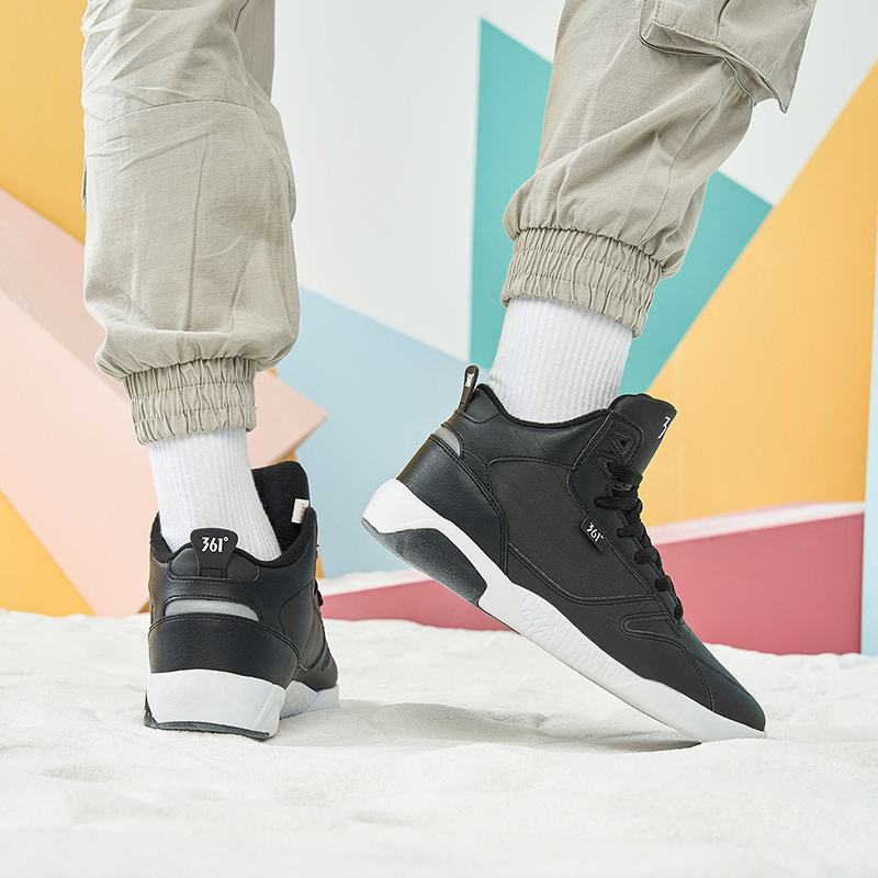 361 board shoes high top men's shoes 2022 winter plus velvet warm cotton shoes 361 degree casual shoes small white shoes sports shoes tide