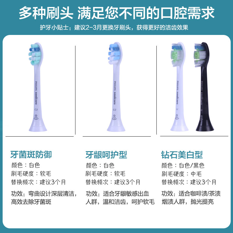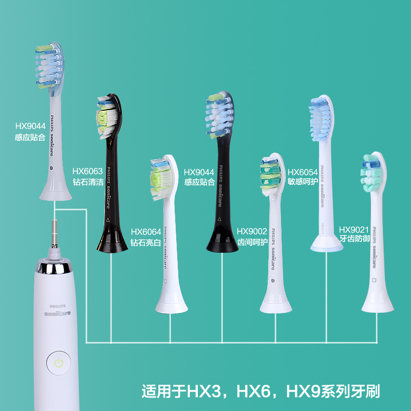 HX6063 three white brush heads cleaning and whitening HX6063 three black brush heads cleaning and whitening HX6073 three white mini brush heads HX6068 eight white brush heads