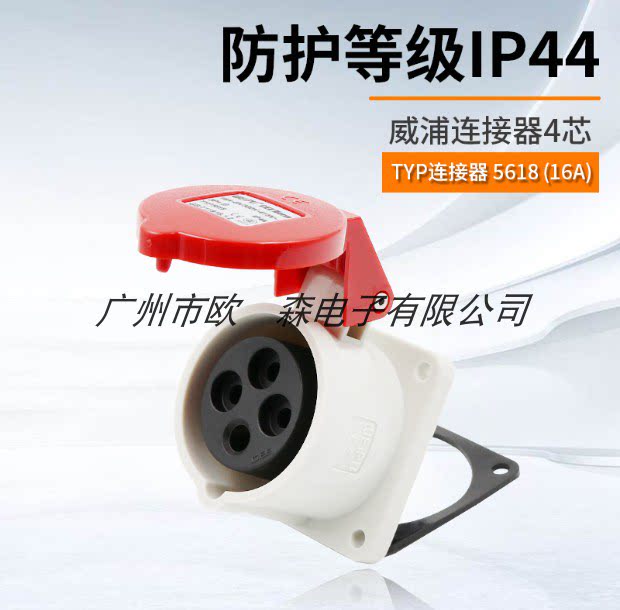 weipu IP44 16A 4 core concealed straight socket TYP5618