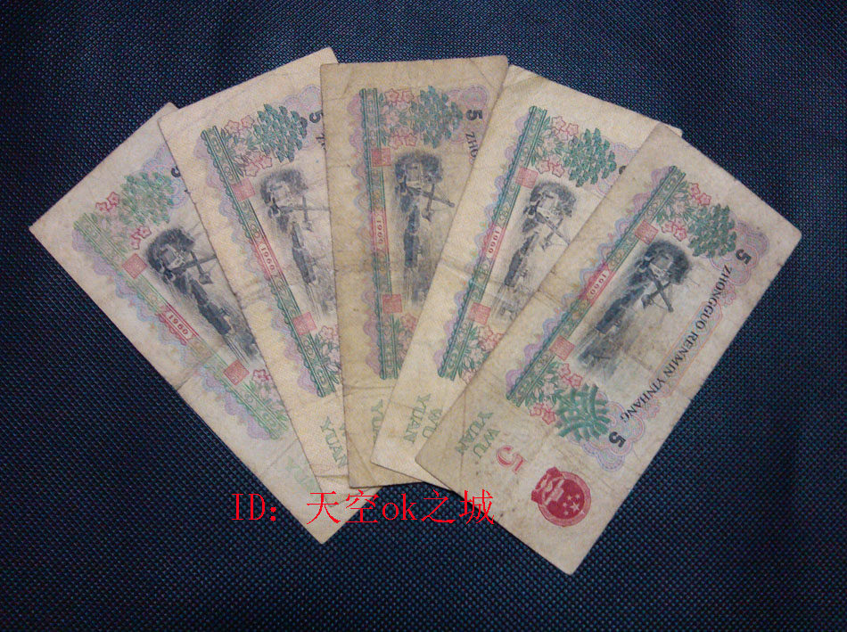 The third set of RMB 5 - yuan Steel Workers in 1960 5 yuan paper currency collection guaranteed real currency dispersion
