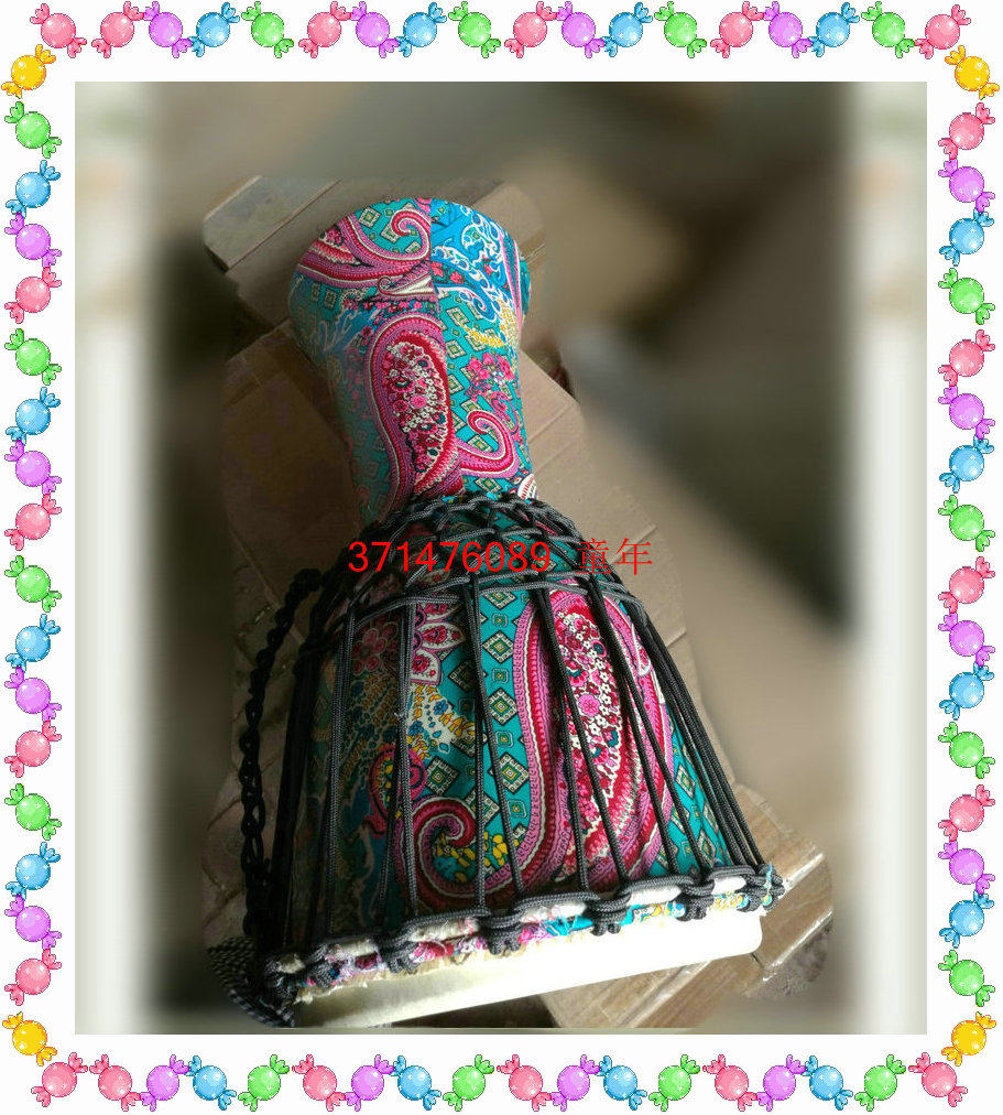 2017 new products Africa drum solid wood splicing cloth art Non-peacock feathers Chau Hand drum 10 inch 12 inch Mountain sheepskin