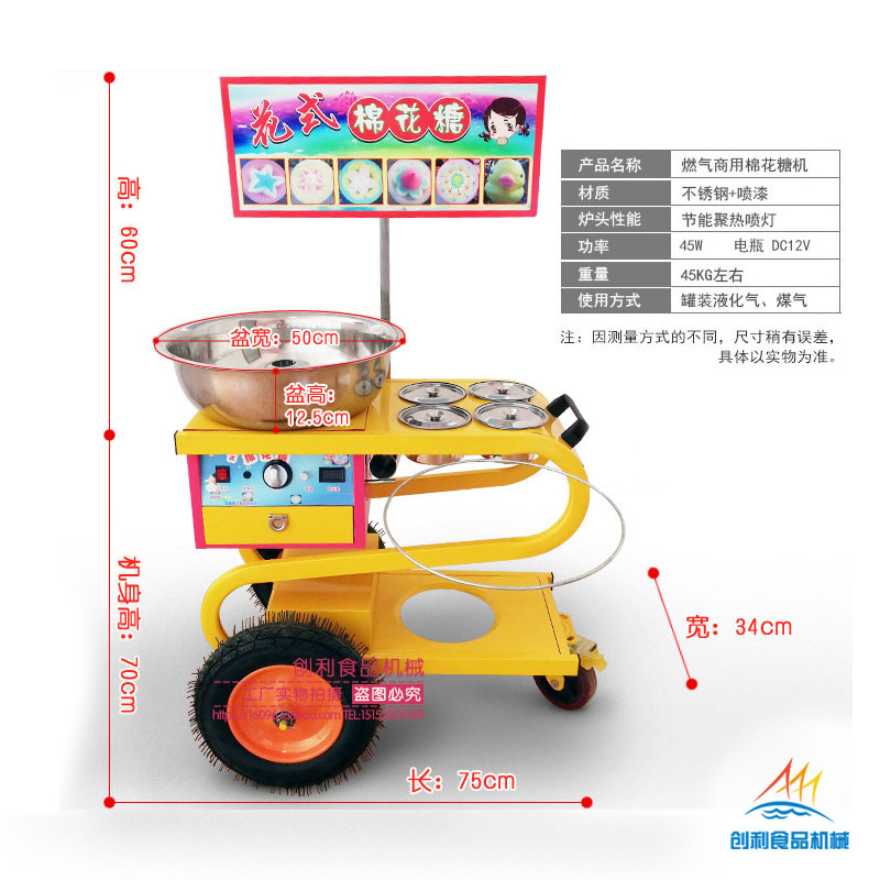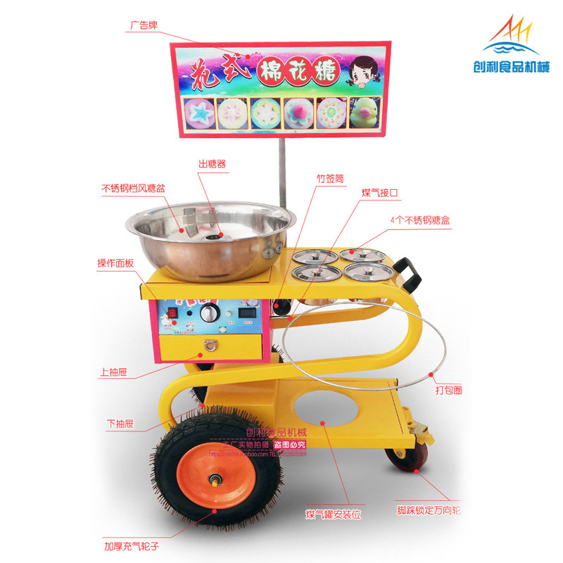 S Type Marshmallow Machine Luxury Cart Type Commercial Electric Gas Marshmallow Machine Fancy Brushed Marshmallow Machine