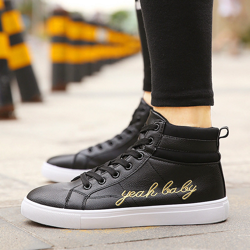 Popular autumn and winter new comfortable upgraded men's shoes Korean casual British lace-up sneakers high-top shoes trendy shoes
