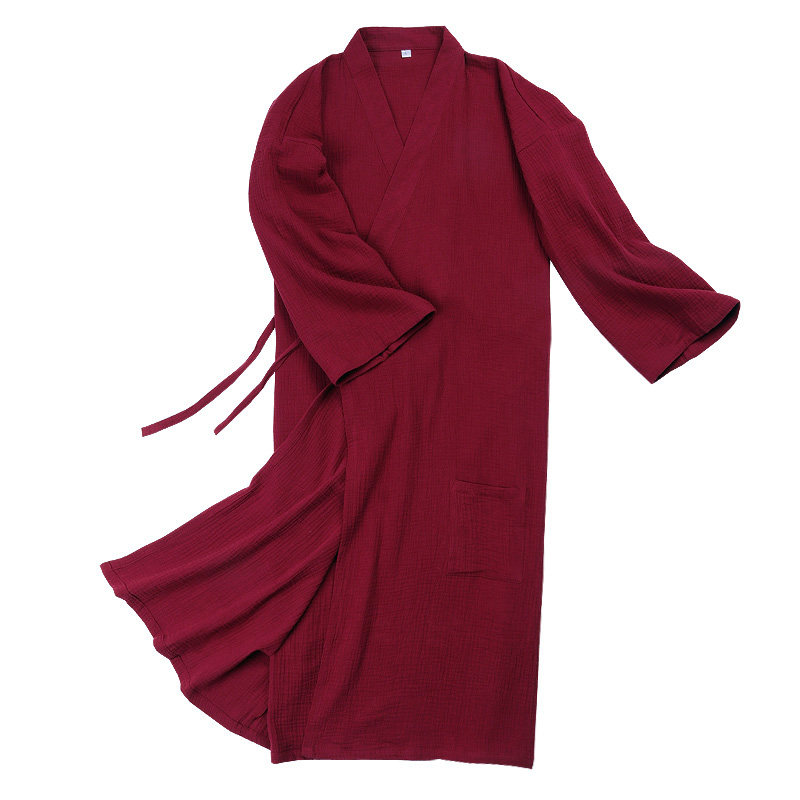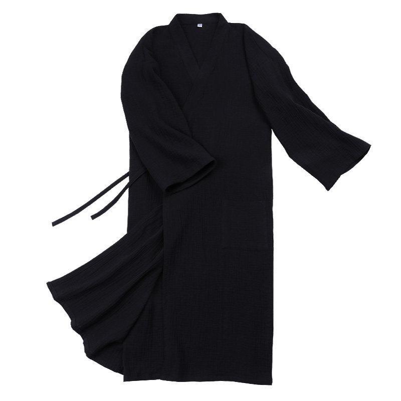 Pure cotton long version of the Han suit family of clothing Japanese kimono and large size Chinese wind male pyjamas with double layer gauze bathrobe sleeping robe