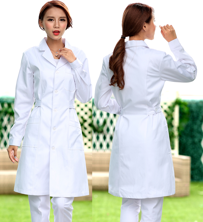 Female classic white coat with white coat (thick) female side waist belt (thick) female tightness cuffs (thick) female side girdle (thin section) female loose sleeves (thin section) female classic style white coat short sleeve