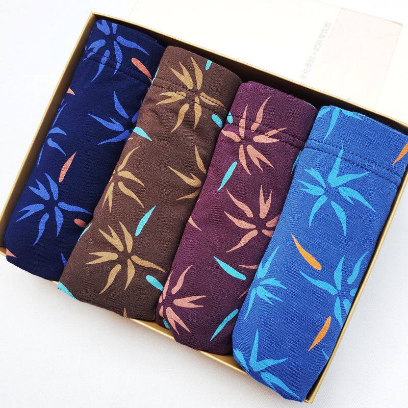 4 packs of Funilai men's underwear autumn and winter bamboo fiber cotton printing comfortable boxer briefs boxer head 0925
