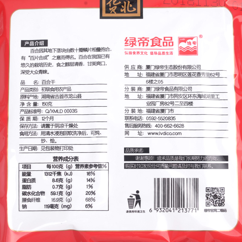 Green Emperor bagged dried lily Fresh edible lily slices Dried Hunan specialty Lily soup ingredients 150g