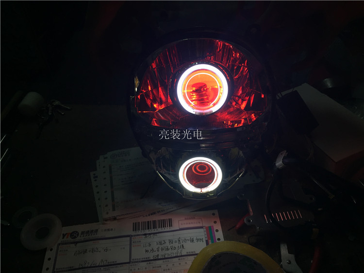 Silver Steel Small Monster Locomotive Double Light Lens Xenon xenon lamp Angels Eye Devil Eye Headlight Assembly Retrofit