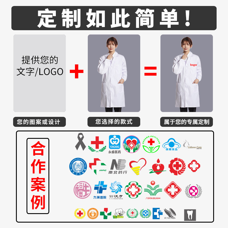 White coat long-sleeved short-sleeved men and women with the same college student experimental suit Work clothes food dustproof clothing custom printed logo