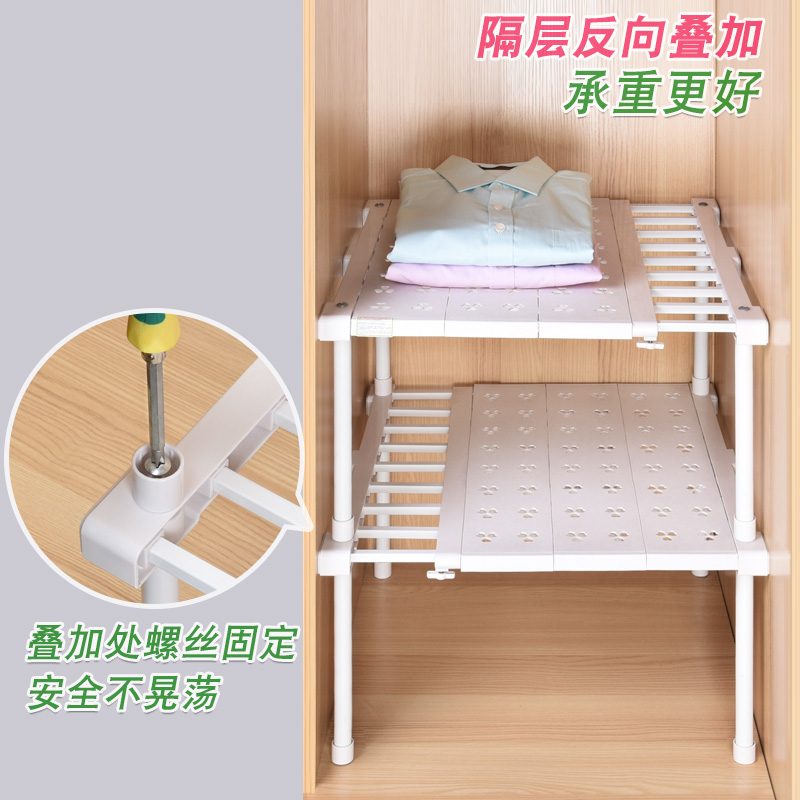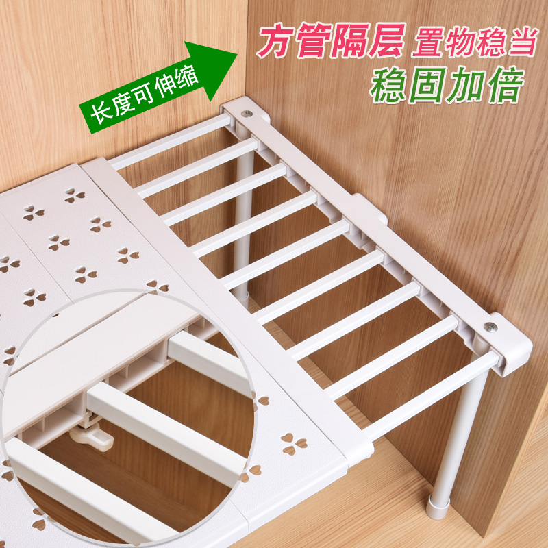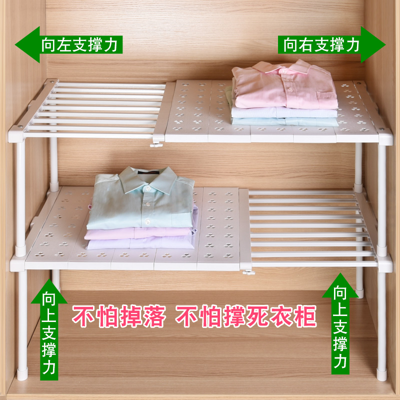 Thickened widening square tube Nail-Free Retractable Wardrobe Shelving Shelving Rack Kitchen supplies containing shelves