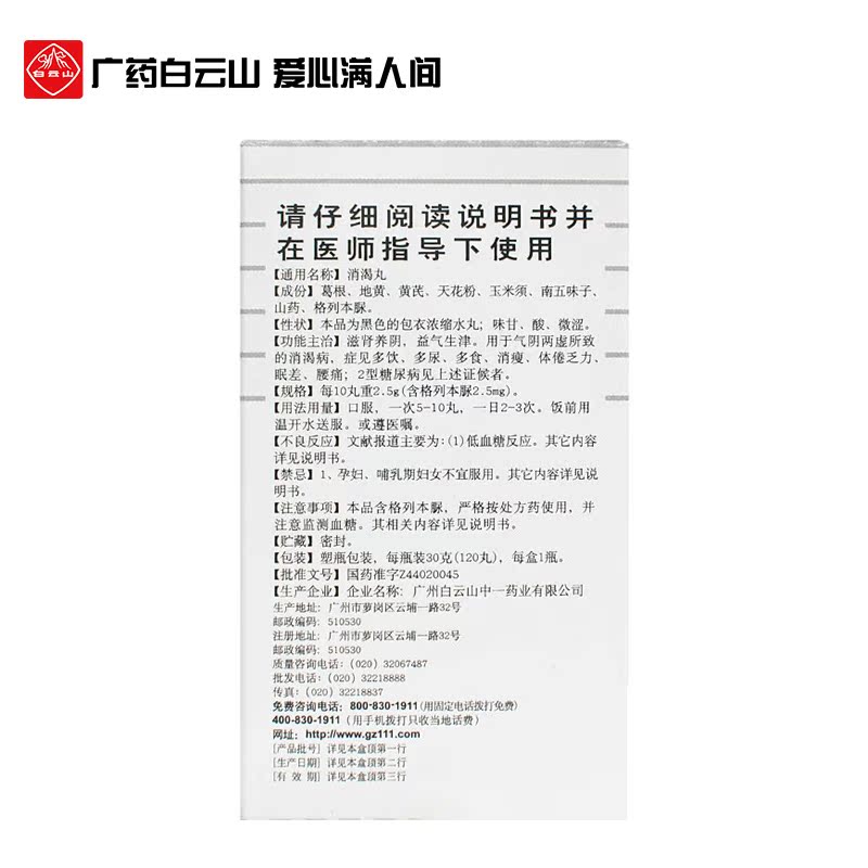 Thirst pills in Baiyunshan 30g * 1 bottle of box nourishing kidney and replenishing qi and qi raw qi Yin Qi Yin Qi Yin deficiency thirst and thirst disease Multi-drink polyuretic multifood wasting body Fatigue Weakness Lumbering Lumbago 2 Type Diabetes Hypoglycemic Control Blood Sugar