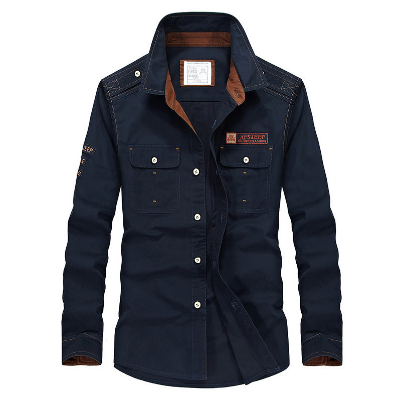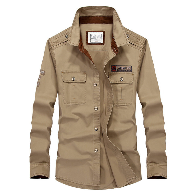 2022 New Men's New Long Sleeve Shirt Men Fall Men - Cotton - loose Shirt Army