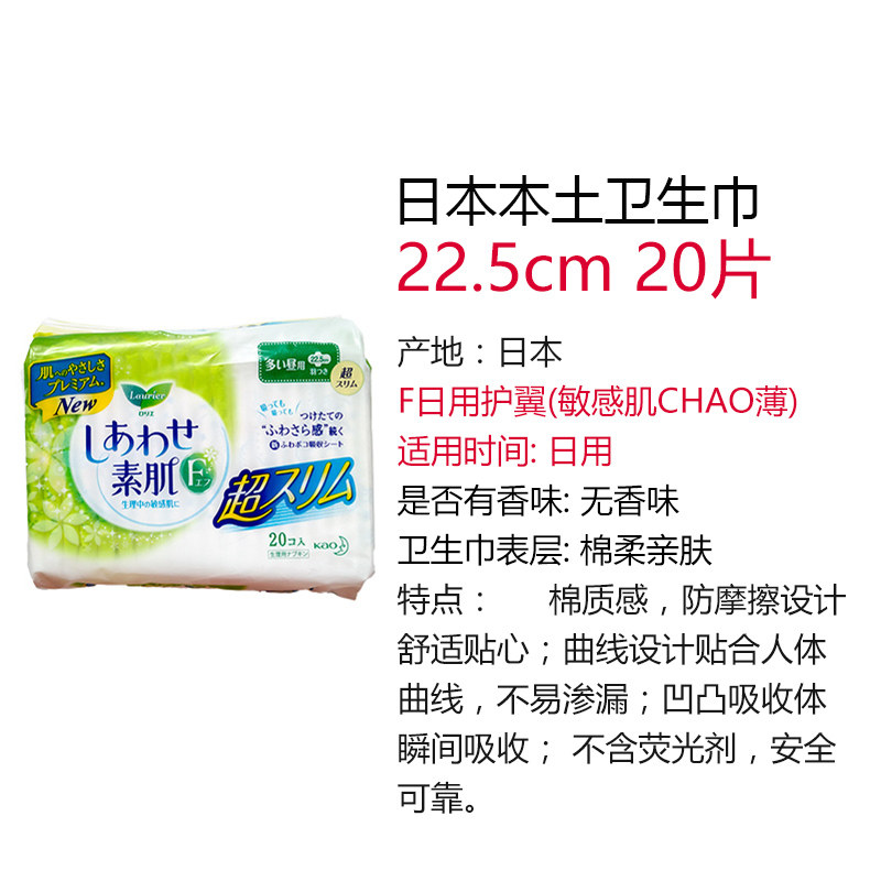 Japan's Kao Leerya F series daily ultra-thin sensitive cotton soft wing sanitary aunt towel 22 5cm*20 pieces