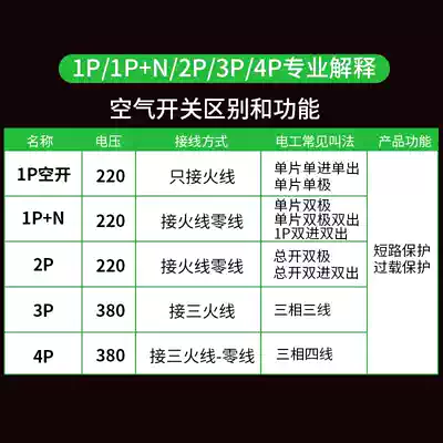 Bull 2P63a leakage protection air switch household circuit breaker 32a water heater air conditioner 1p empty Open belt leakage protection