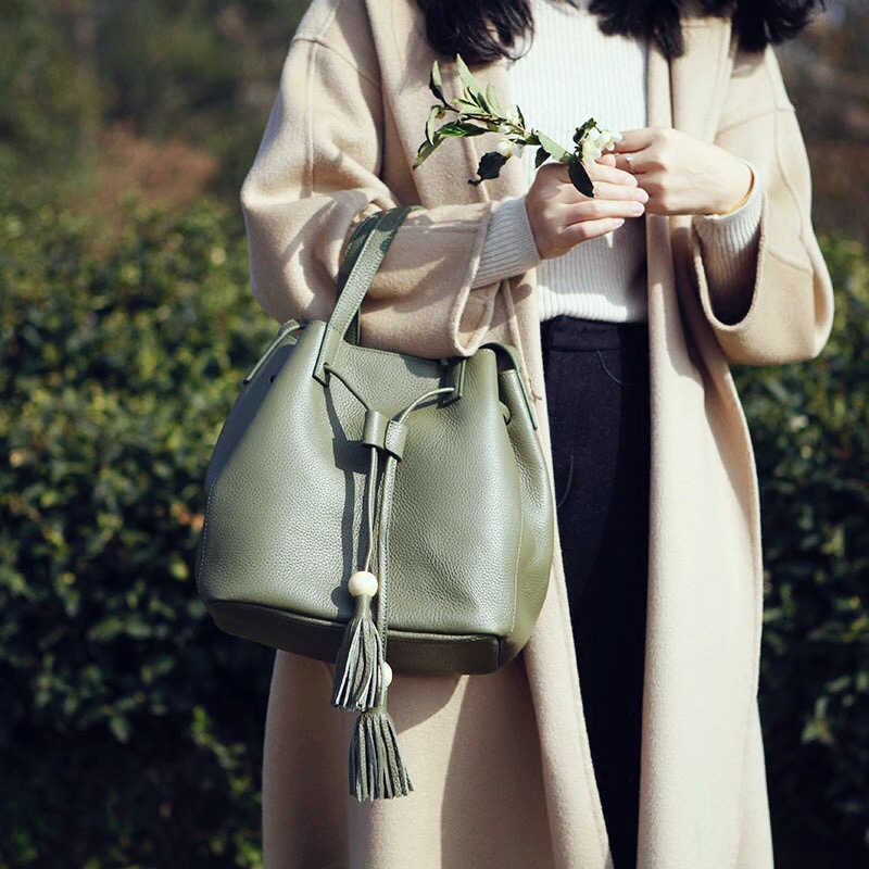 Cloth Valley Forest Cow Leather Lady Handbag Slanted Satchel Bag Big Water Barrel Bag Genuine Leather Bag Art Flow Su Bag B036