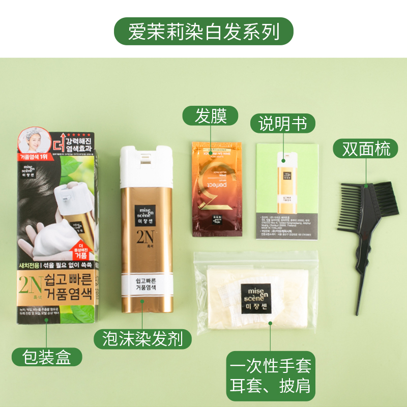 2N black (cover white hair) 3N dark brown (white hair) 4N dark brown (cover white hair) 5N brown (uncovering white hair) 6N bright brown (uncovering white hair) dyed postdyed hair film 180m