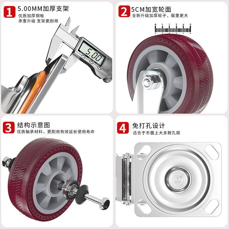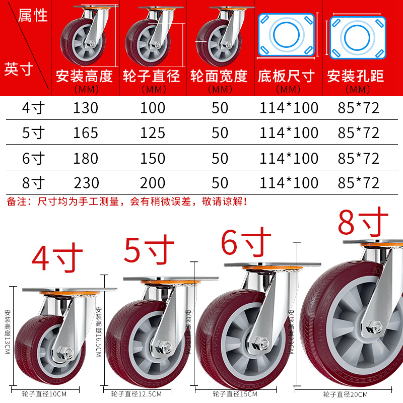 East China 6-inch universal wheel heavy-duty polyurethane pull cart 4 8 5-inch flatbed truck trolley wheel caster with brake