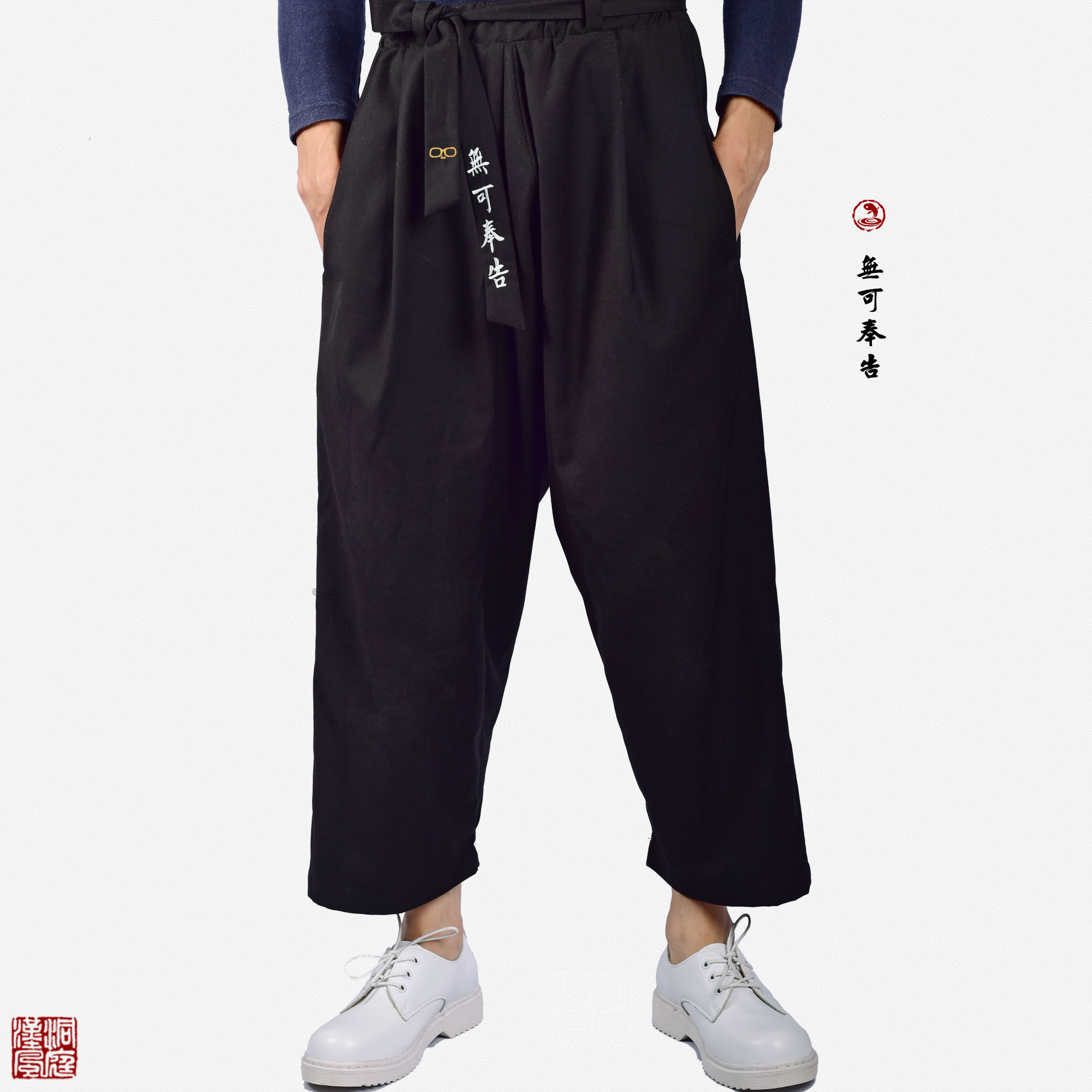 Dongtin Hanfeng Hanfan Men's Clothing and Improved Nine - Min Embroidery Pocket Pants and Kids Couple
