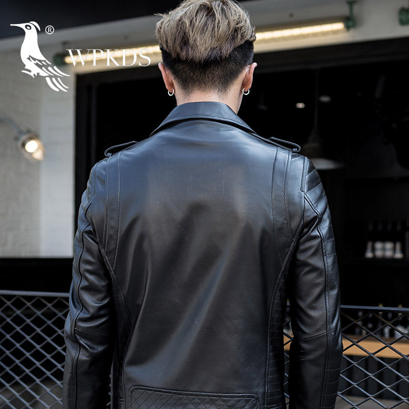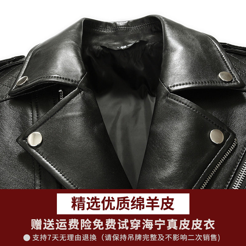 Fashion new men's sheepskin Korean version of motorcycle leather Men's fashion jacket jacket fashion brand plus cotton handsome leather jacket