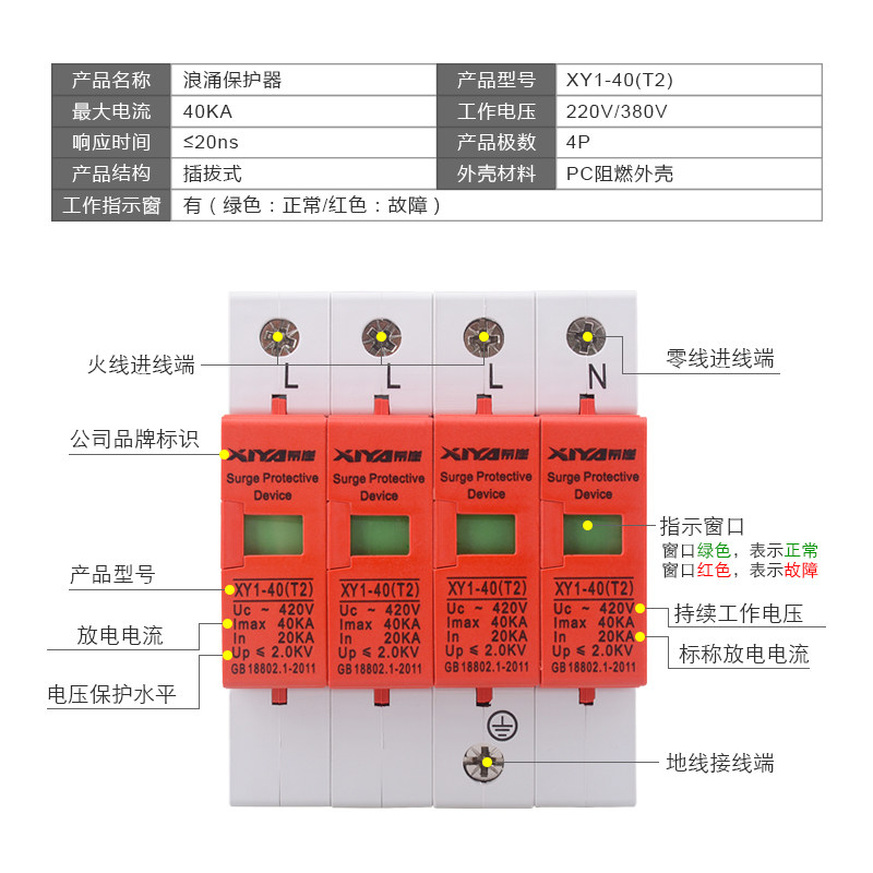 380V three-phase four-wire surge protector lightning protection protector lightning protection module lightning protector