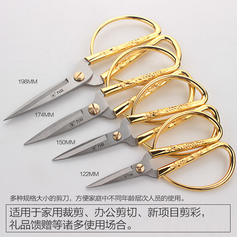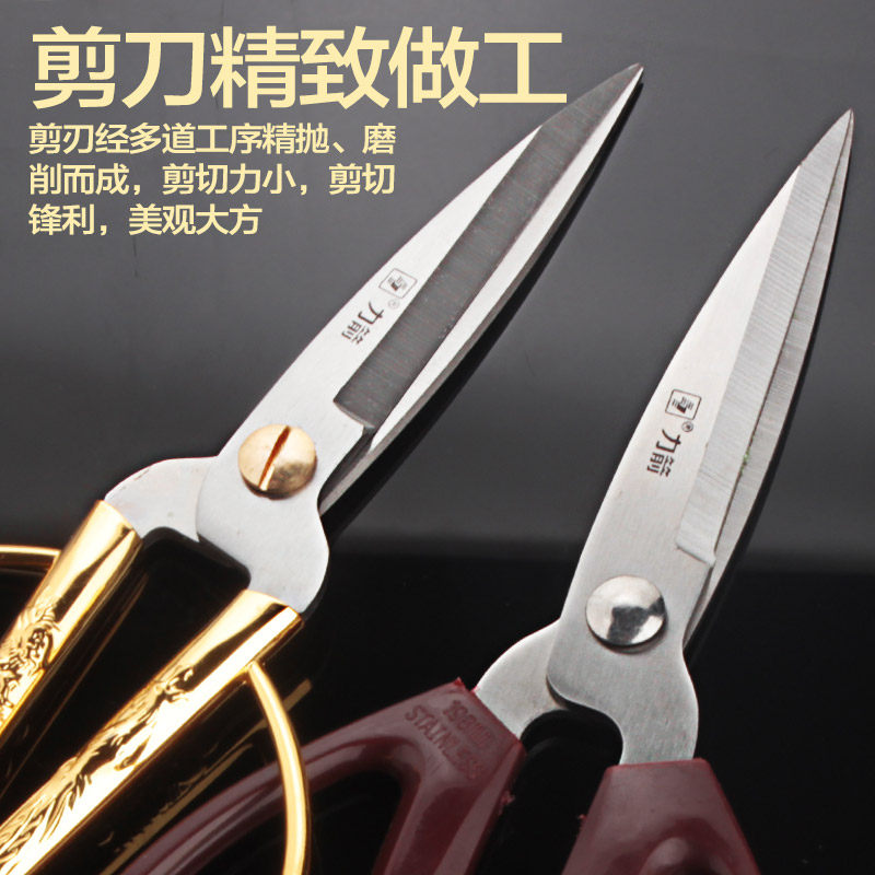 Lijian stainless steel household scissors Dragon and phoenix alloy scissors Home paper-cut opening scissors Office kitchen size scissors
